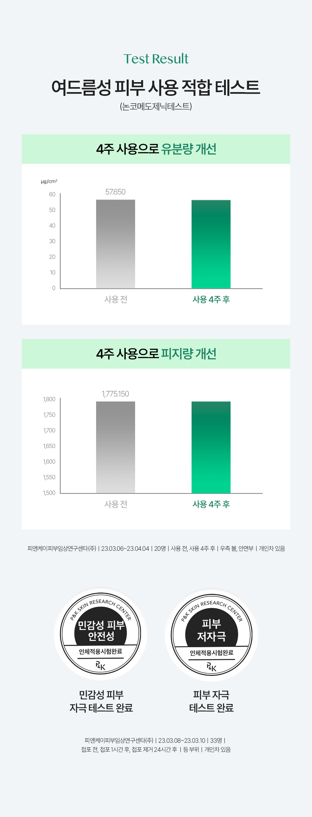 제품 주요 사양 (피부타입, 색상(호, 번) 등)